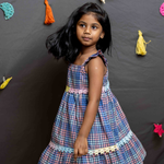 Blue checks design with tiered cotton layers and frill sleeves.