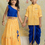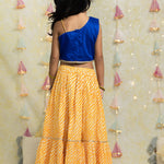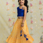 Blue Embroidered Top and Yellow Leheriya Lehenga Set for girls