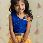 Dress your little girl in this stunning Blue Embroidered Top and Yellow Leheriya Lehenga Set, perfect for festive occasions and celebrations. The exquisite details and vibrant colors make this set a standout piece in any wardrobe.