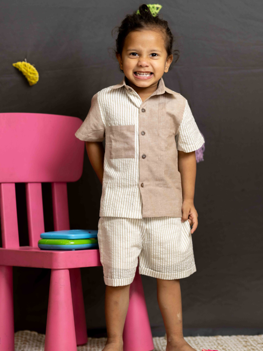 Brown assymetric seersucker coord set