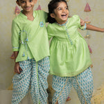 - Adorned with a cute flower applique matching the dhoti's printed fabric