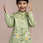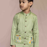 Match it with any pairing set of pants. This Green Kurta is made from soft, breathable cotton, combines comfort with style. Featuring embroidered pockets and a classic mandarin collar, it’s a perfect choice for any festive occasion!