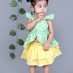 Two-Tiered Skirt: The set includes a two-tiered skirt in a beautiful yellow color, adorned with delicate laces on its hemlines, adding a touch of elegance to your baby girl's look.