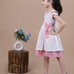 - A classic schiffli cotton dress with peach cotton lining made from super soft cotton fabrics