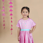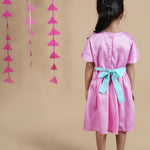 - Beautiful and bright pink gathered waist dress in pure cotton satin