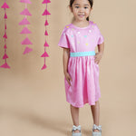 Knee Length Pink Hearts Dress for Girls