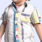 Chic Design: Elevate your kid's fashion with our Cotton Linen Striped Shirt, blending comfort and trend seamlessly