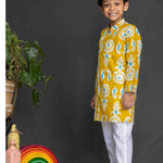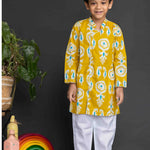 Mustard Pineapple Printed Boys Kurta with Pant