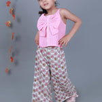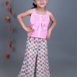 Introducing our Pink Top and Printed Palazzo Set – a charming ensemble designed to add flair to your little one's wardrobe.