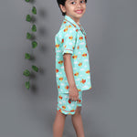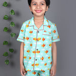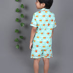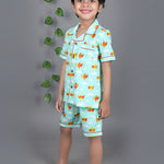 Light Blue Nightsuit: The light blue nightsuit comes with shorts and a notched collar shirt, providing both comfort and style for your child.