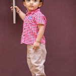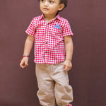 Introducing our Red Checks Shirt and Aloha Pants Set – a stylish ensemble designed to add a touch of charm to your little one's wardrobe.