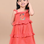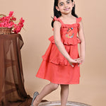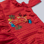 Red Frill Dress with Embroidery For Girls