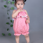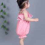 Adorable Heart Print: This romper is adorned with an all-over heart print in a soft pink color, perfect for sunny days and cheerful outings.