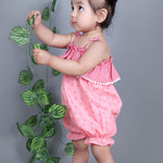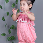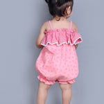 Cute Mini Bows and Contrast Cotton Lace: The romper is adorned with two cute mini bows on both shoulder straps and contrast cotton lace on the chest frill panel, adding adorable detailing to this charming ensemble.