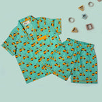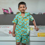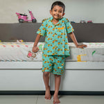 - Made from pure cotton fabric, this adorable green and mustard nighsuit features scooters screen printed all over.