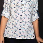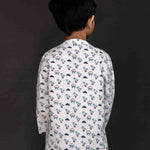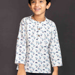 Versatile and stylish, this white printed full-sleeve shirt kurta is crafted from pure cotton for breathable comfort. Featuring a sleek mandarin collar and a front placket, it offers a modern yet traditional vibe. The sleeves can be rolled up and secured with a contrast flap button, adding a casual touch to its design. Perfect for small gatherings or as a relaxed casual shirt, this kurta effortlessly blends functionality and elegance, making it a wardrobe essential.