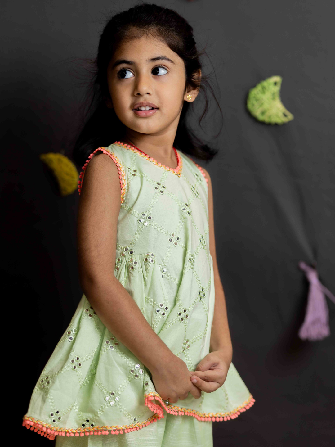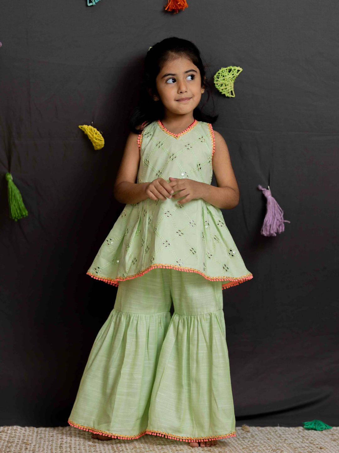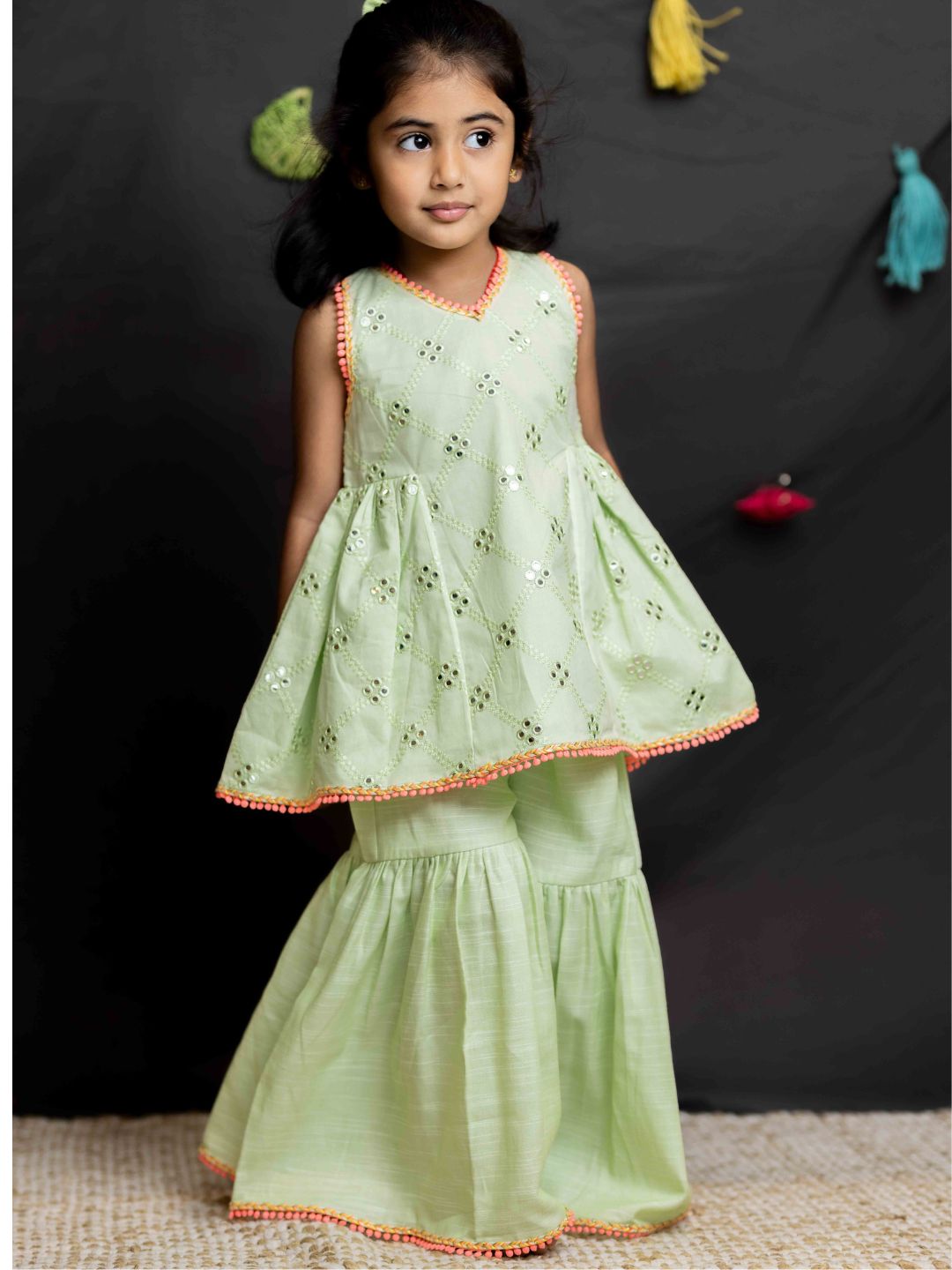 Green mirror girls sharara set