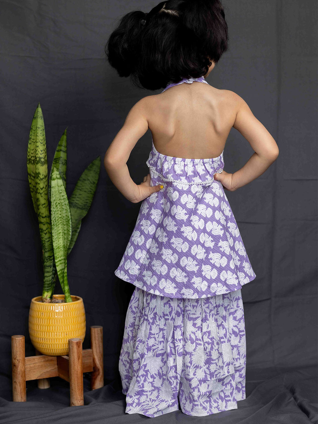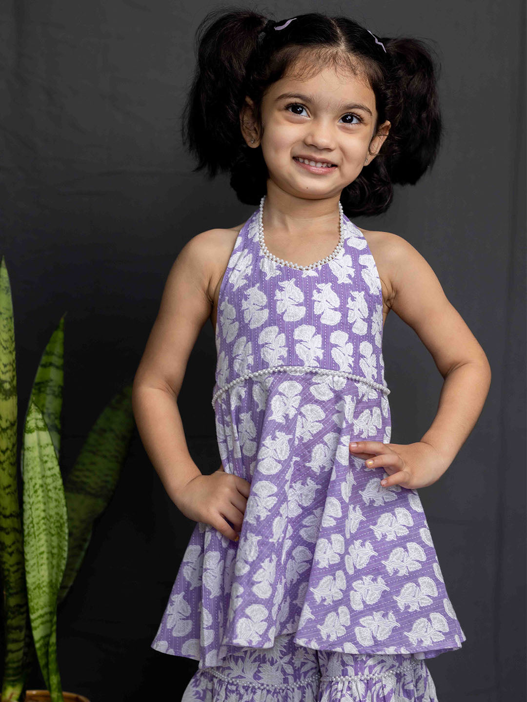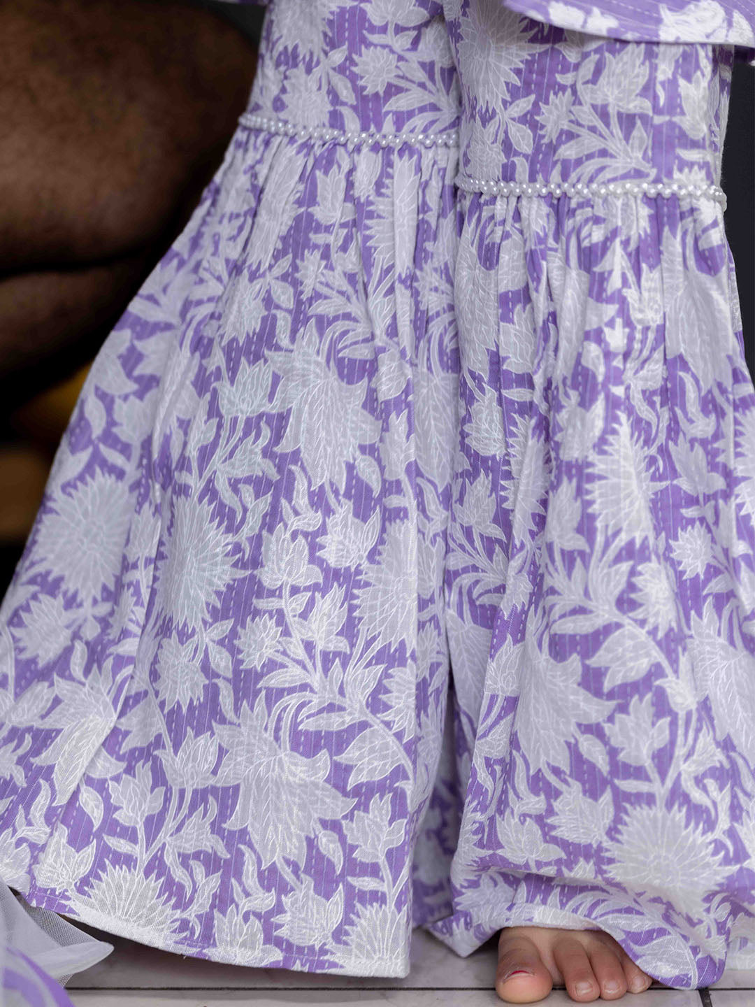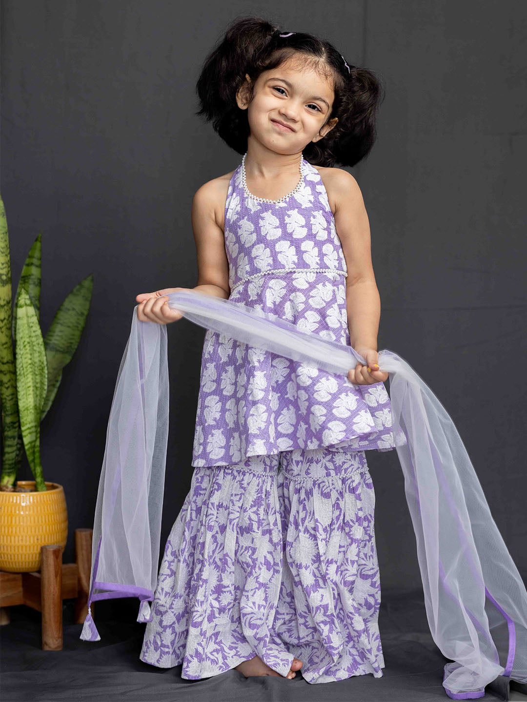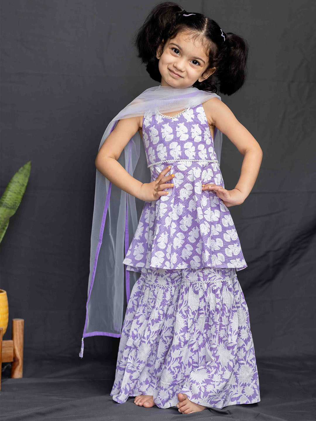 Introduce a touch of elegance to your little one's wardrobe with our exquisite Lilac Sharara Set with Dupatta. This beautiful ensemble combines traditional craftsmanship with a modern silhouette, perfect for special occasions.