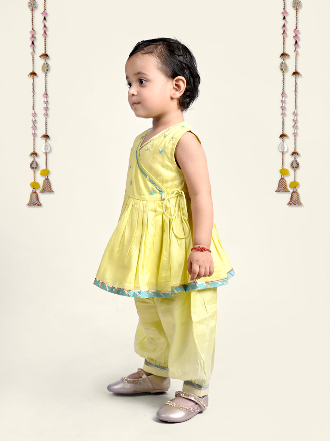 Coordinating Salwar: The salwar features contrast gota lace near the binding, completing the coordinated and stylish look for your little one.