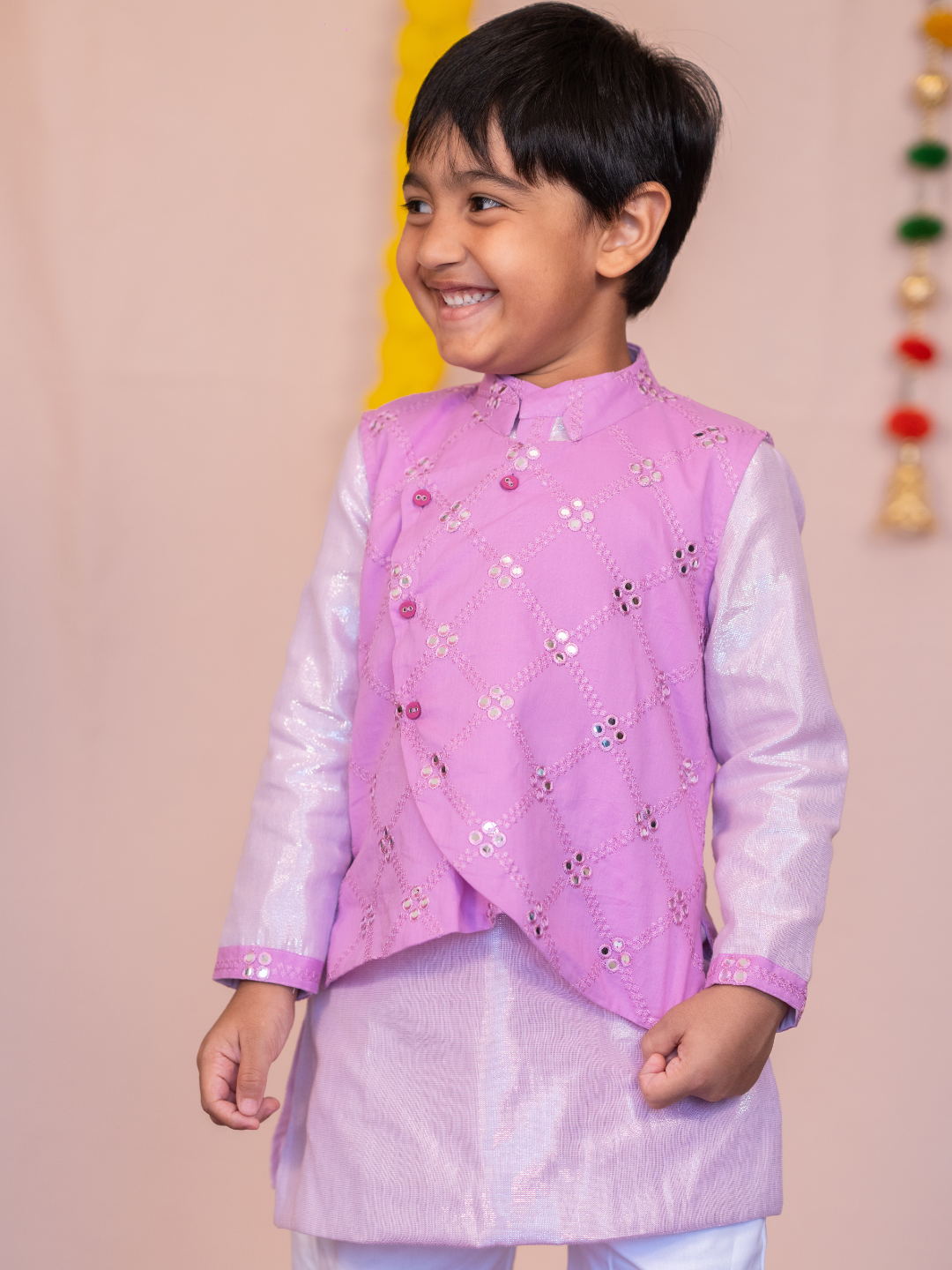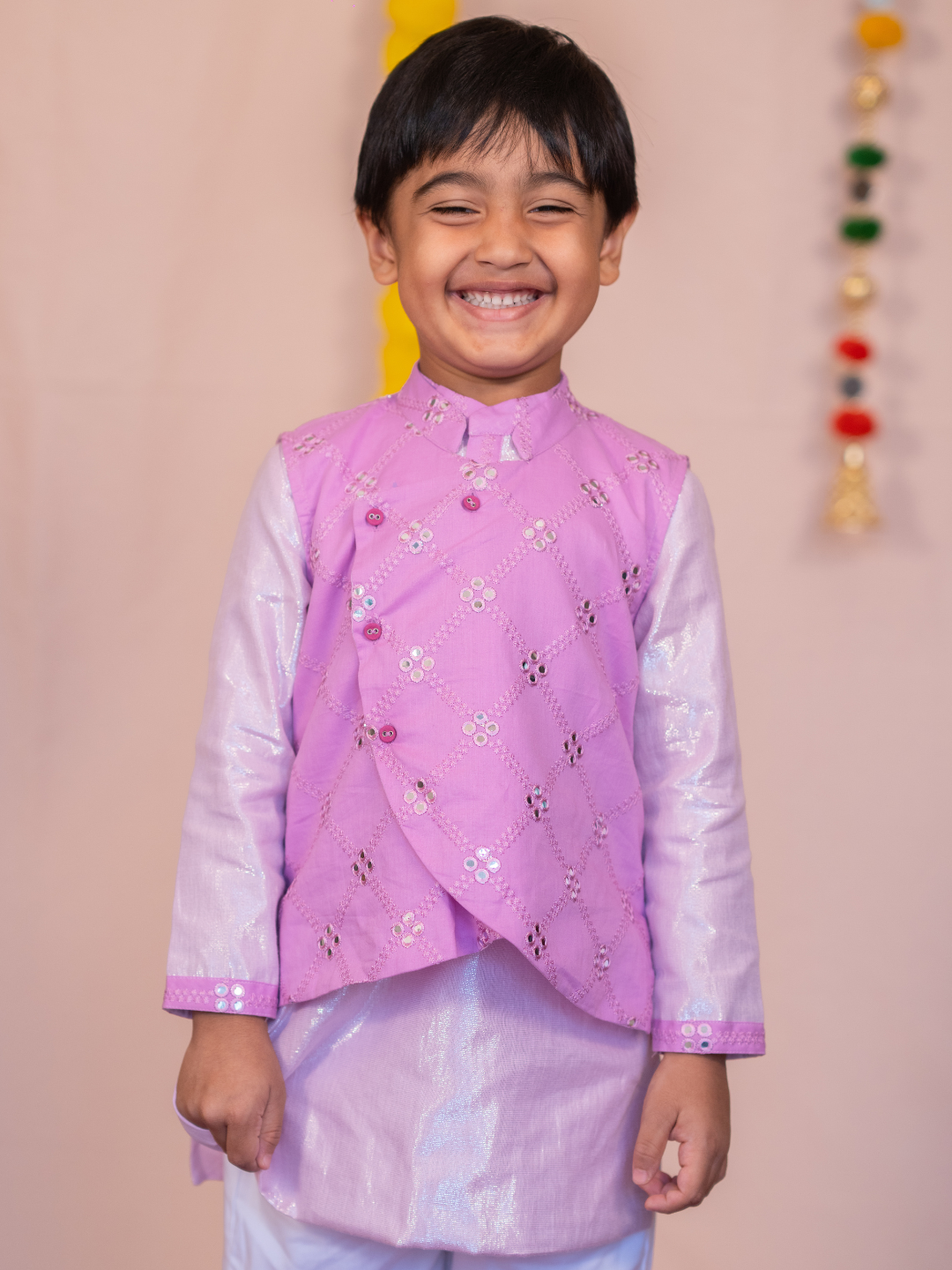 Purple mirror boys bandhgala set