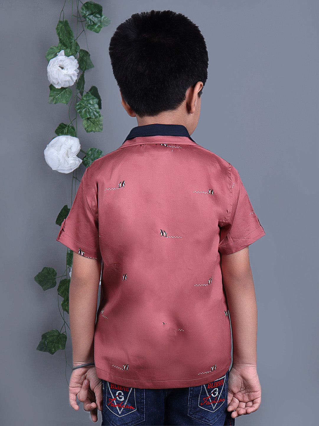 This adorable shirt combines playful penguin prints with elegant design elements for a unique and stylish look.