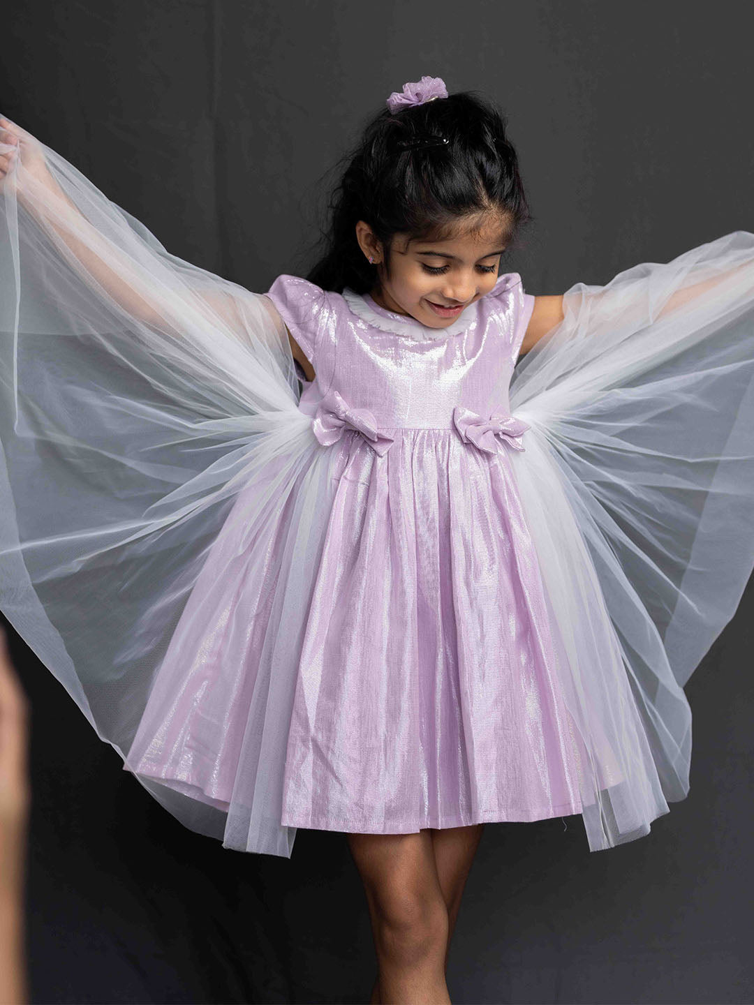 Make your little one shine in this enchanting Lilac Shimmer Party Frock, perfect for special occasions and celebrations.