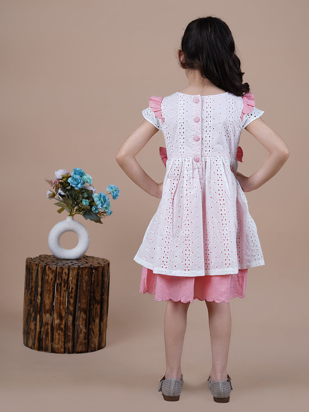 • A classic schiffli cotton dress with peach cotton lining made from super soft cotton fabrics
