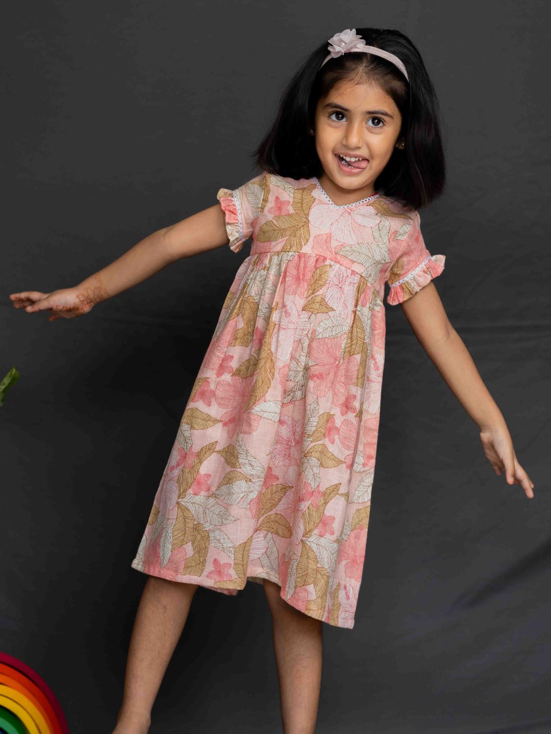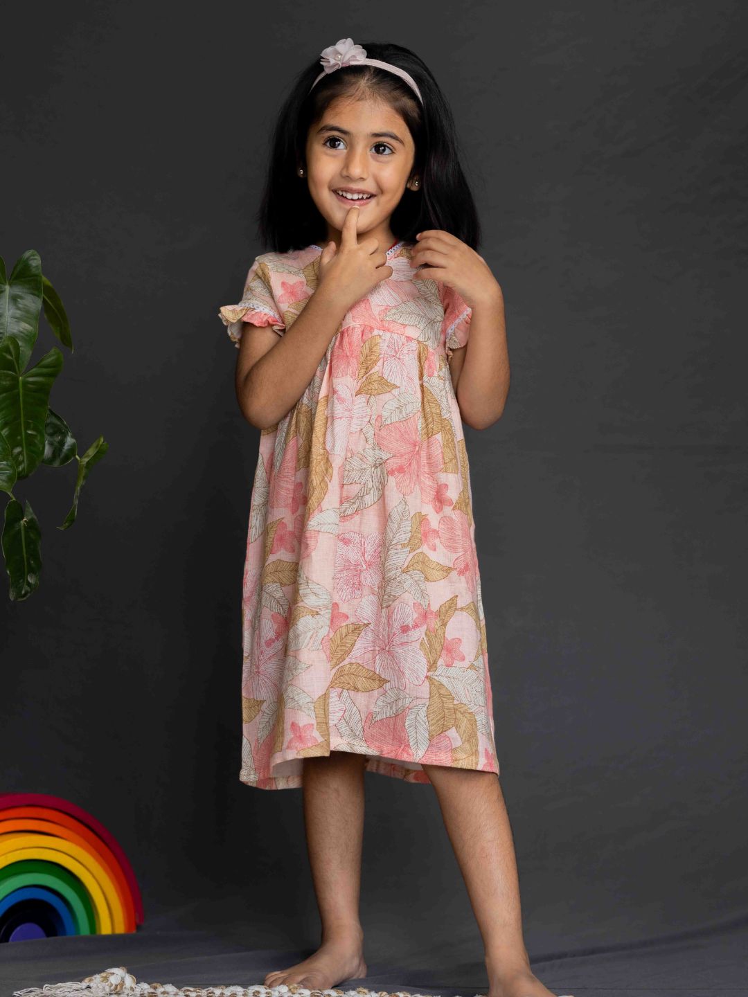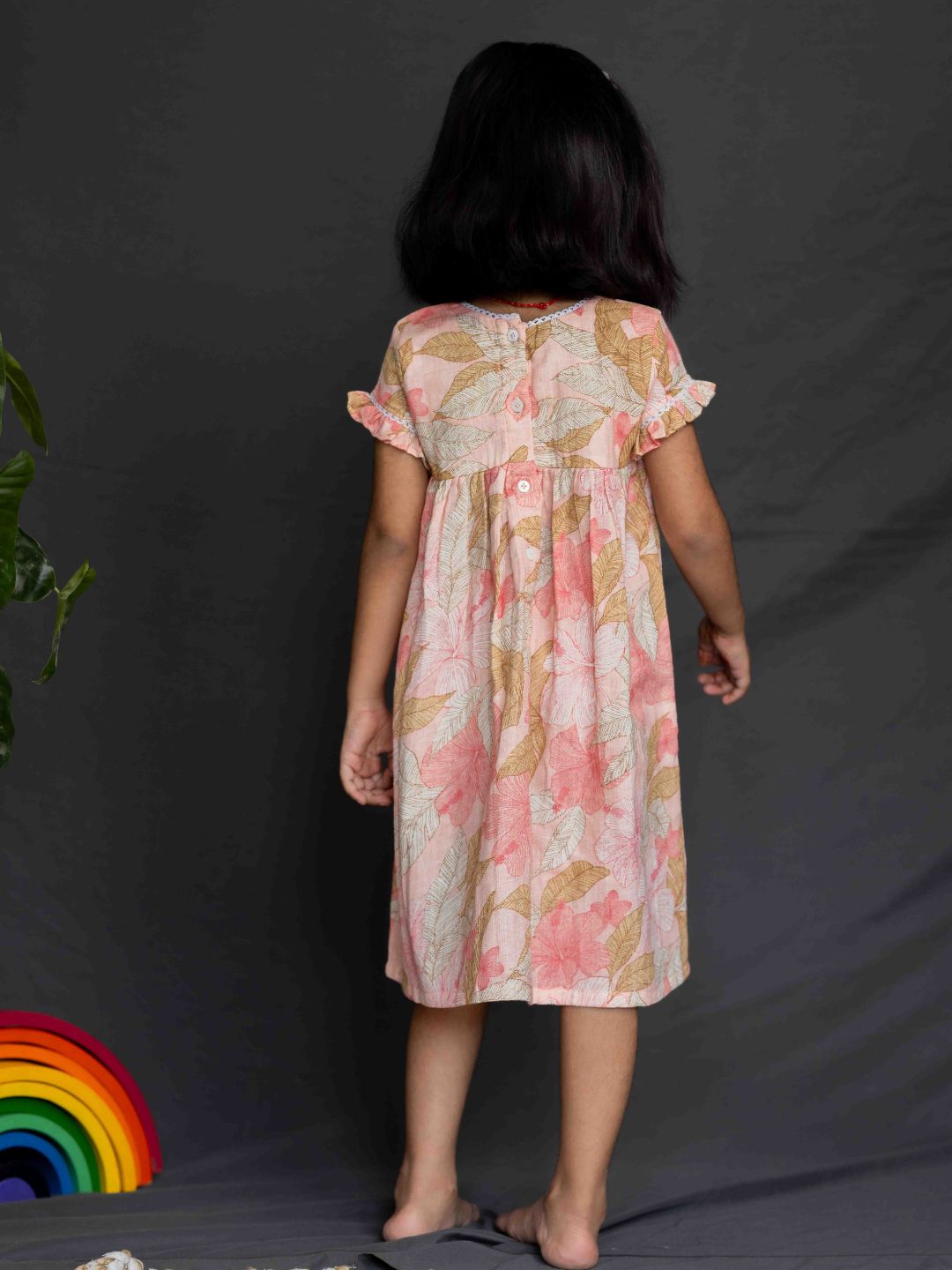 Peach Floral Cotton Gauze Dress