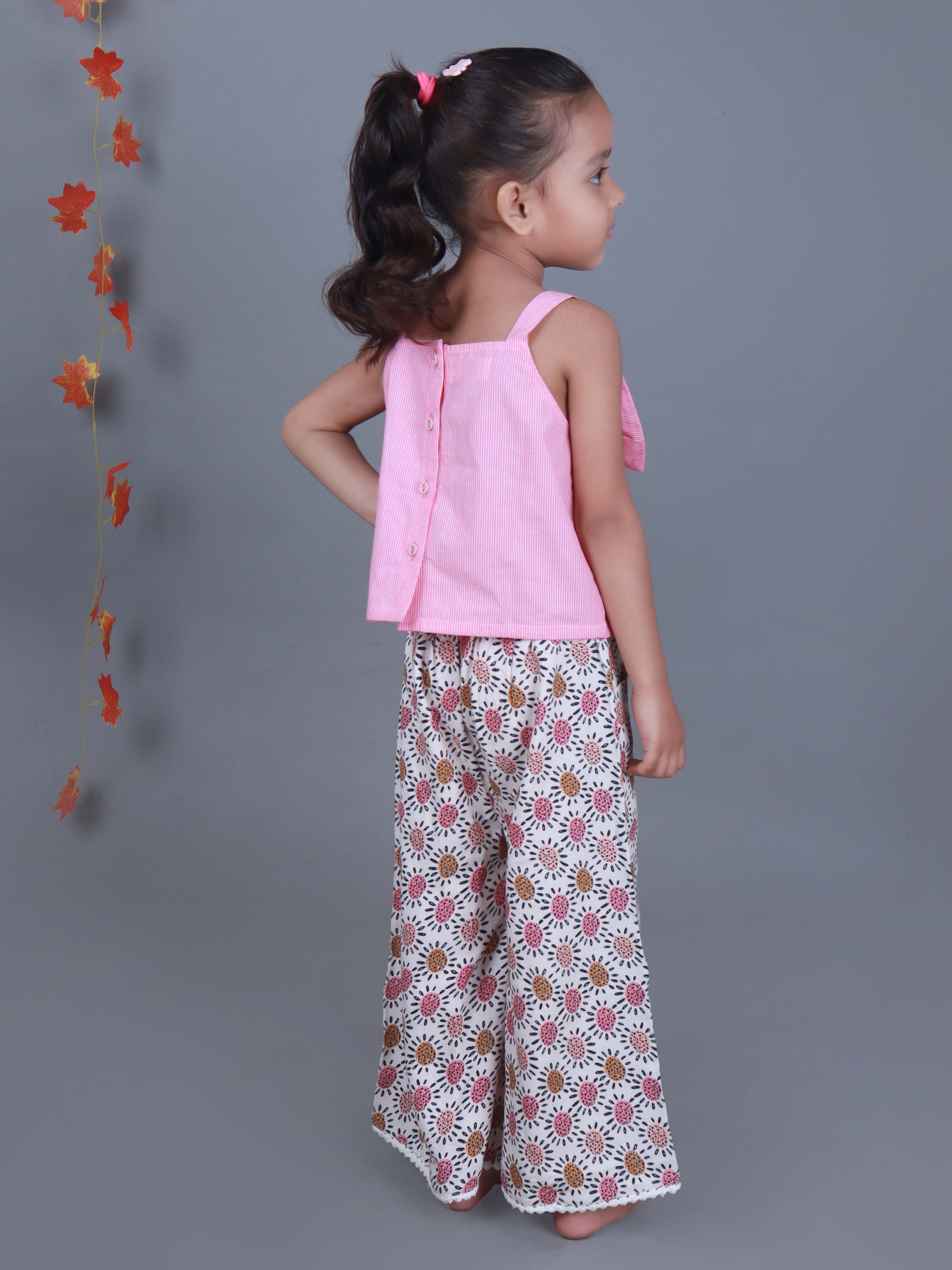 Let your little one shine in style with our Pink Top and Printed Palazzo Set – where comfort meets adorable fashion!