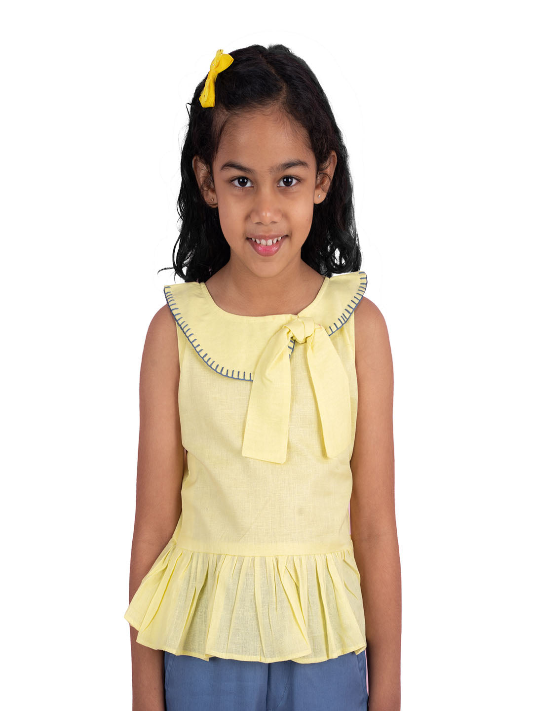This bright yellow cotton top is as comfortable as it is stylish. Featuring an asymmetrical collar design, it adds a fun twist to any outfit and pairs perfectly with any bottoms, from blue jeans to skirts. The breathable cotton fabric ensures all-day comfort, making it a great pick for casual wear.