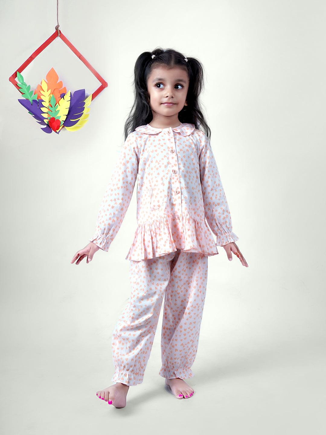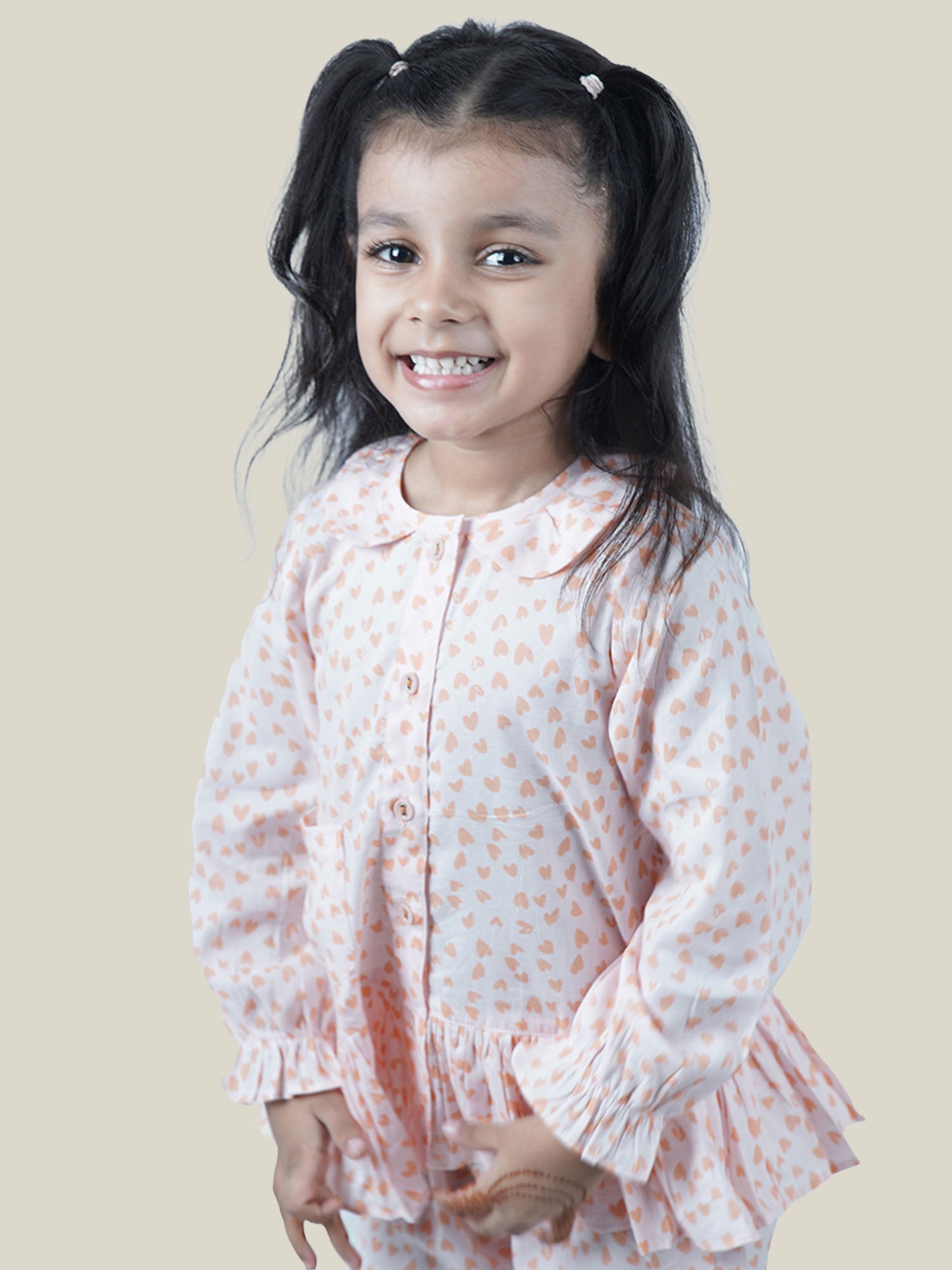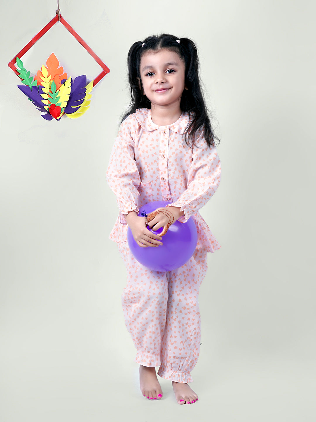 Hearts Print: Adorned with cute hearts all over, this nightsuit adds a touch of sweetness to your little girl's bedtime routine.