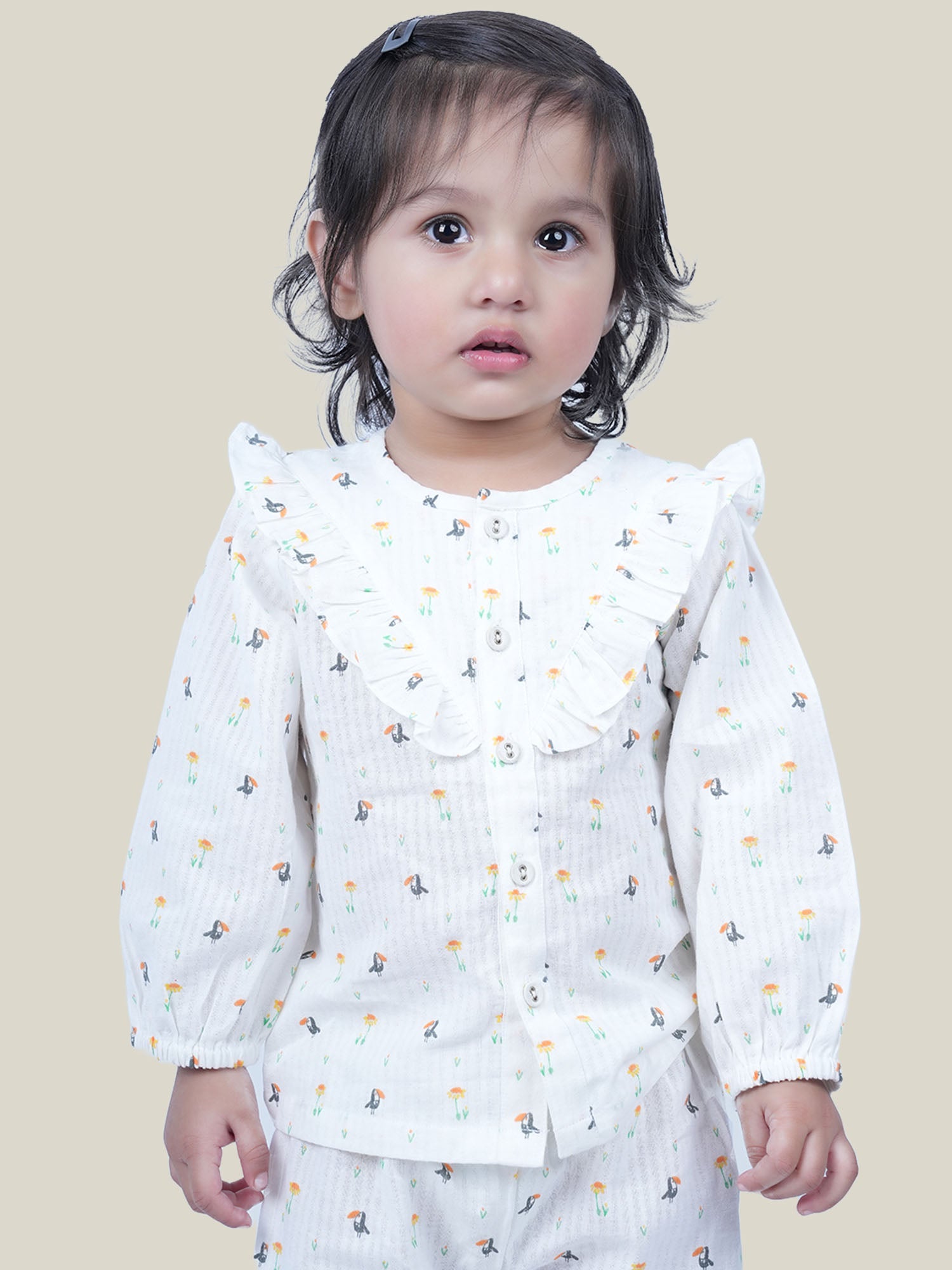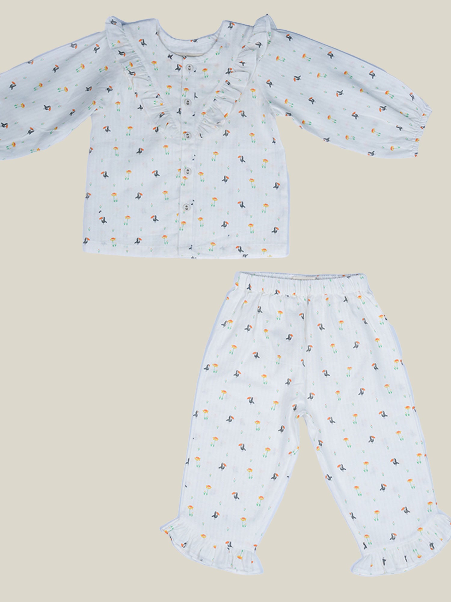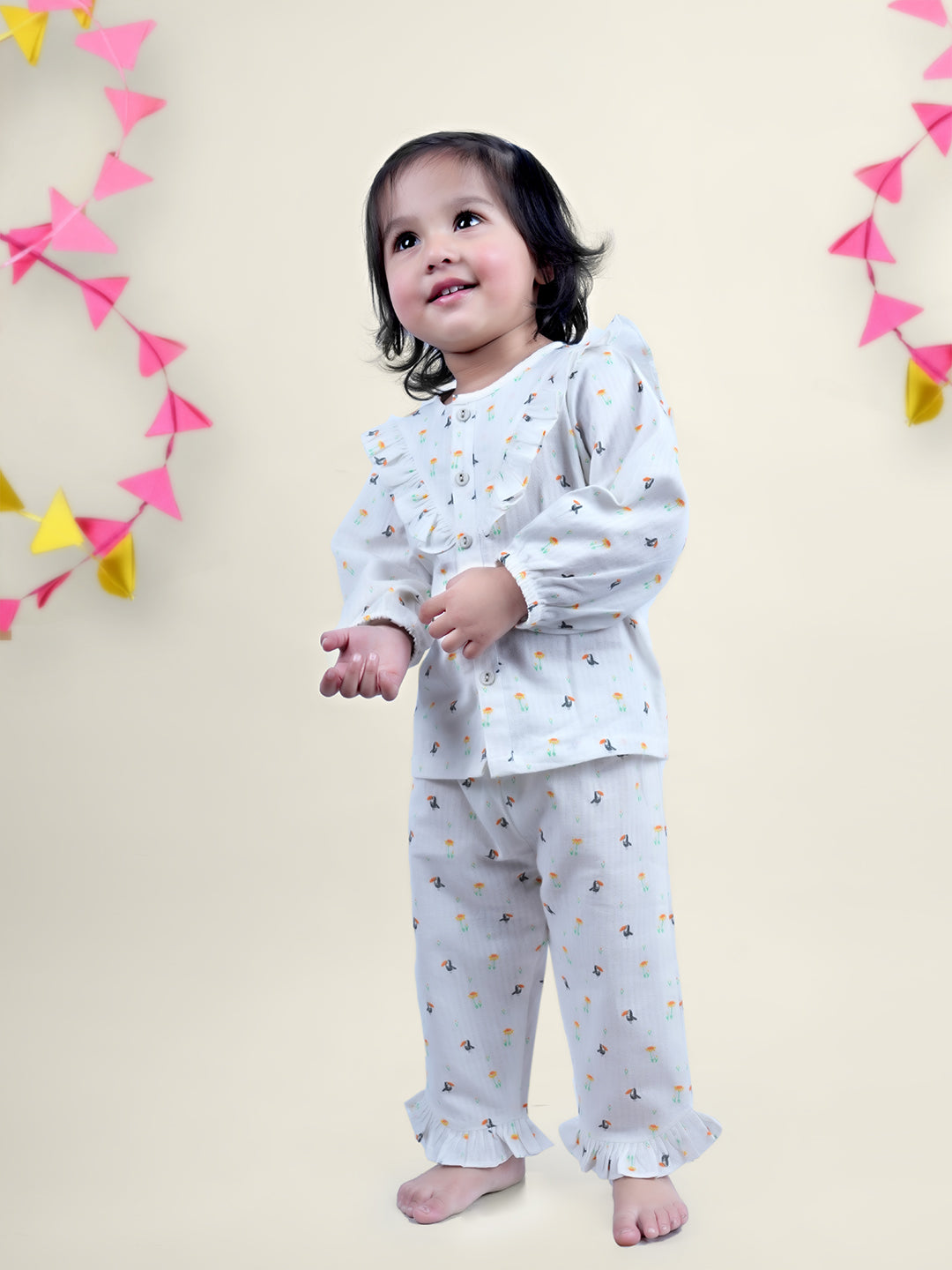 Toucan and Flower Print: Adorned with charming toucan and flower prints, this loungewear set adds a touch of nature-inspired delight to your baby girl's wardrobe.