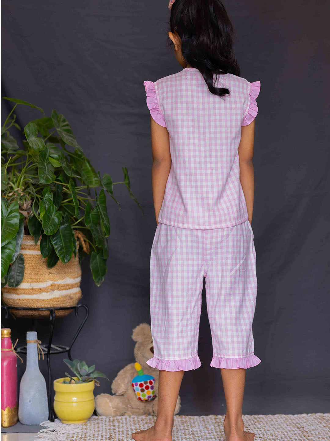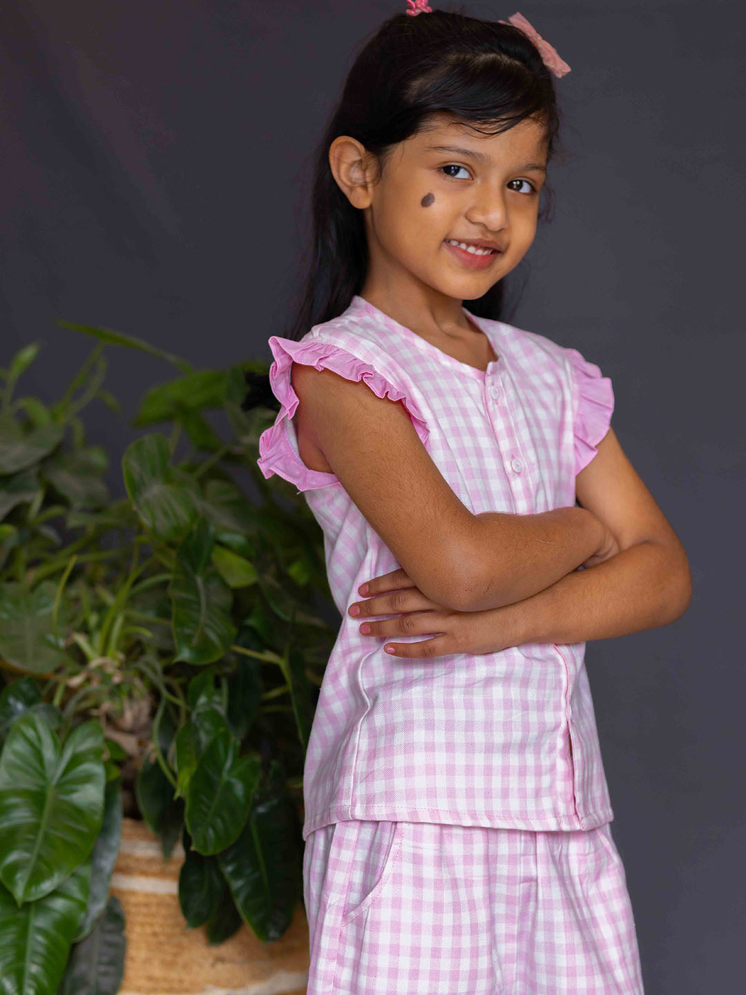 Snuggle up in comfort with this cozy pink and white checkered flannel pajama set. Designed for warmth and softness, the set features a relaxed-fit top and matching bottoms, perfect for chilly nights. The classic checks and timeless style make it a must-have for a restful and stylish sleep.