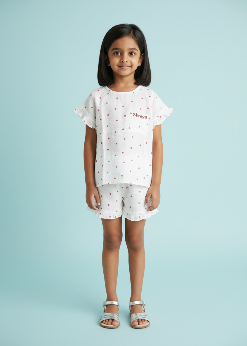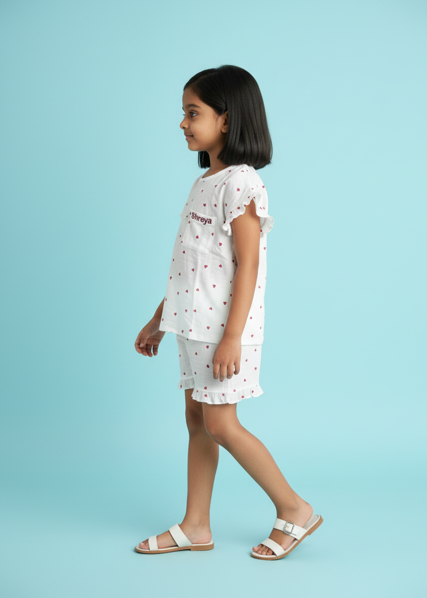 Red Hearts White Gauze Lounge Wear