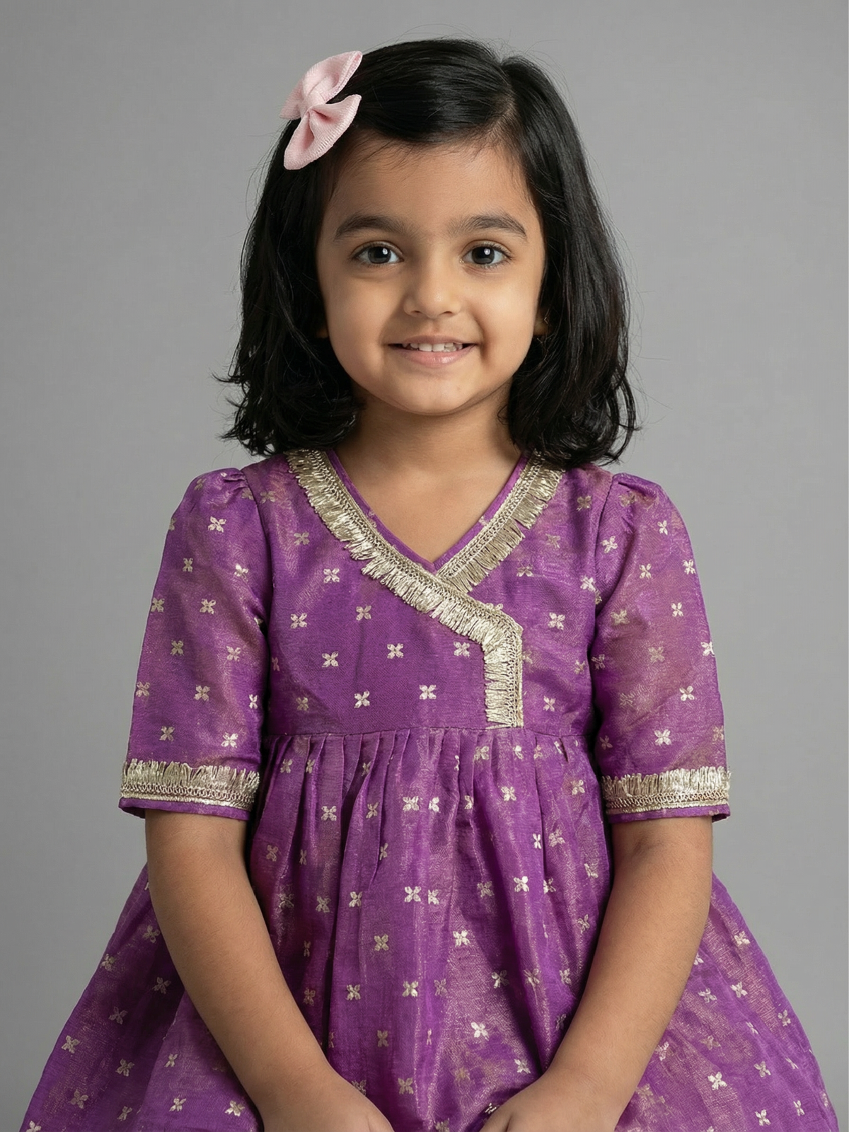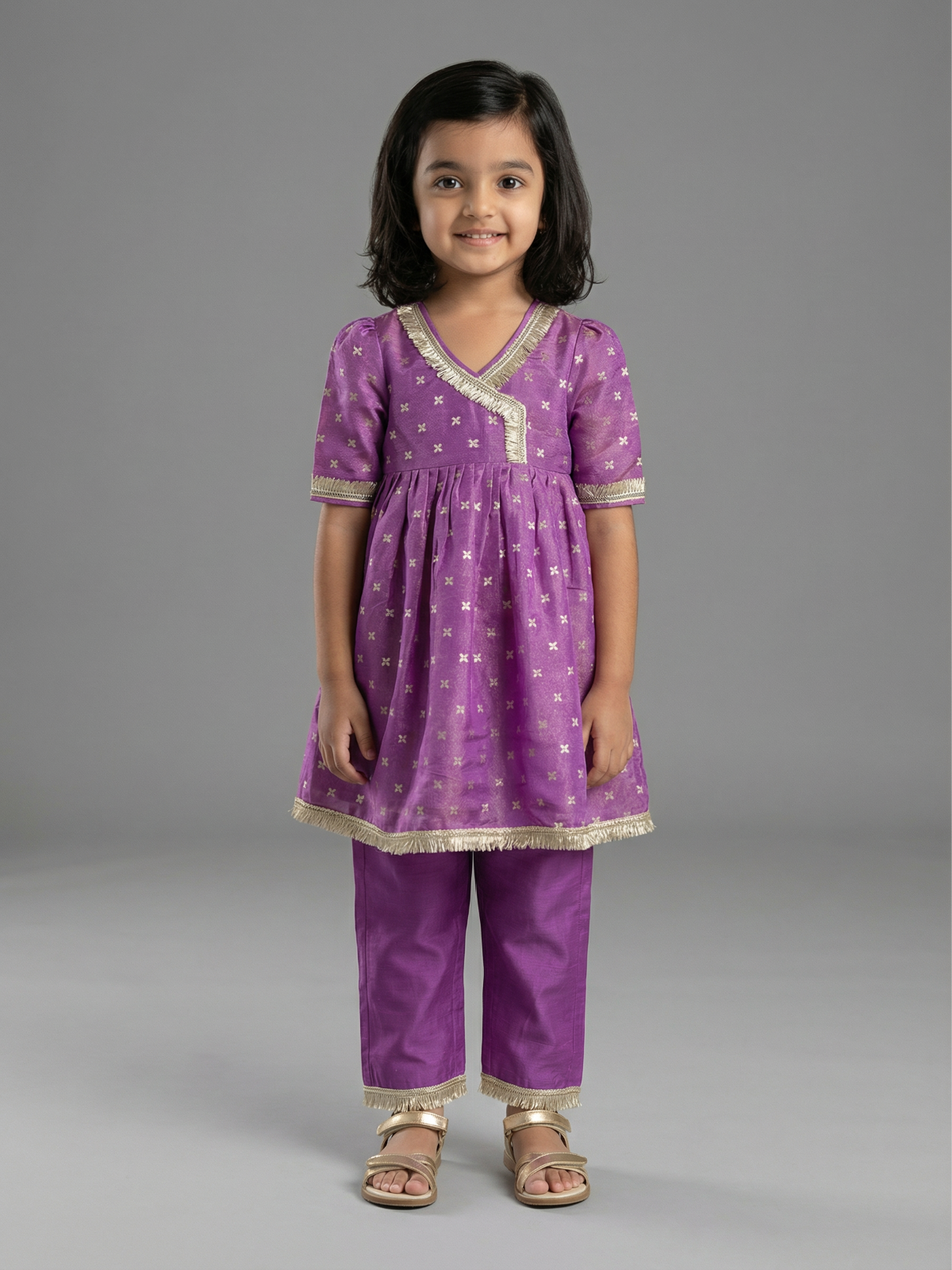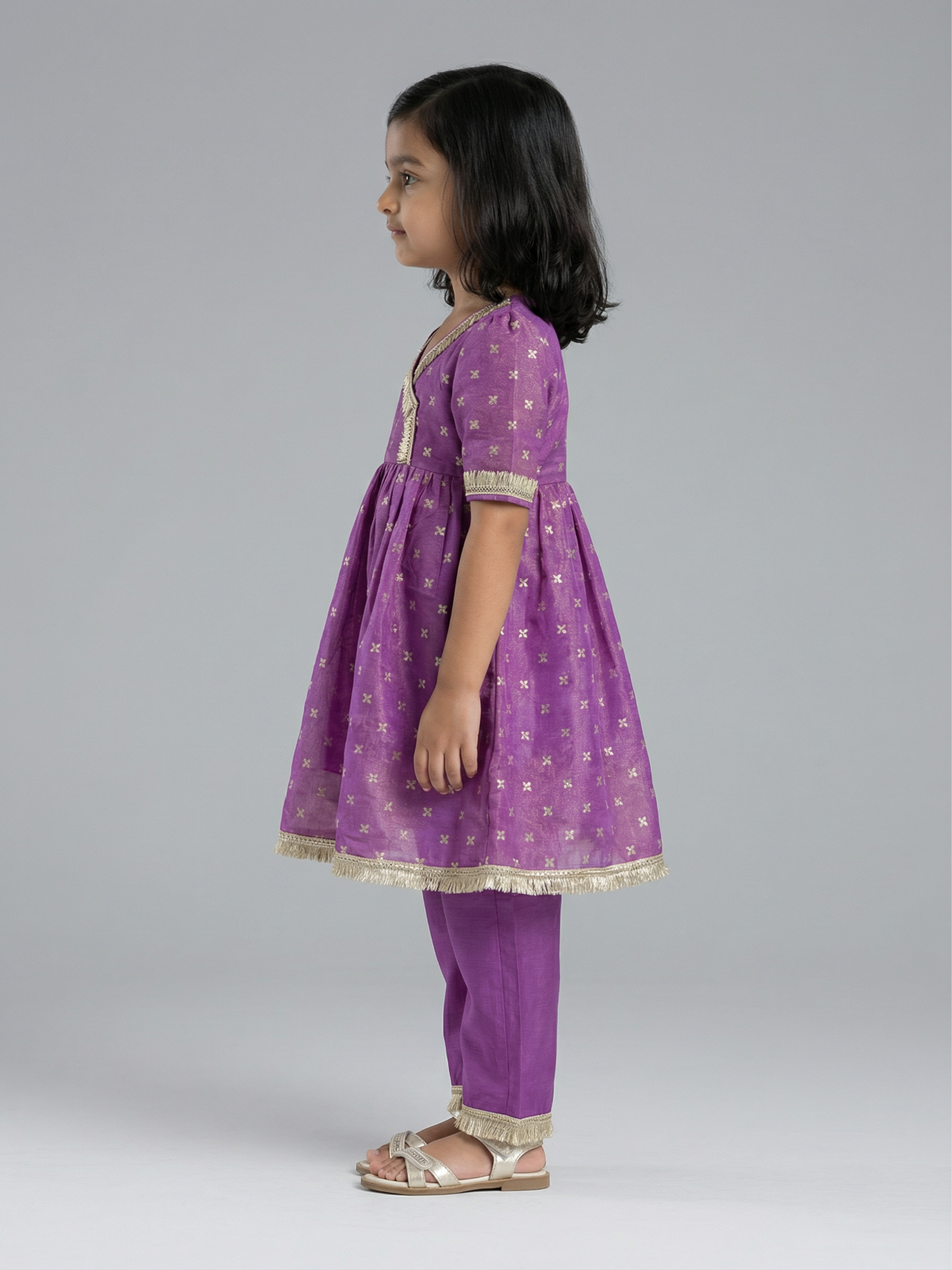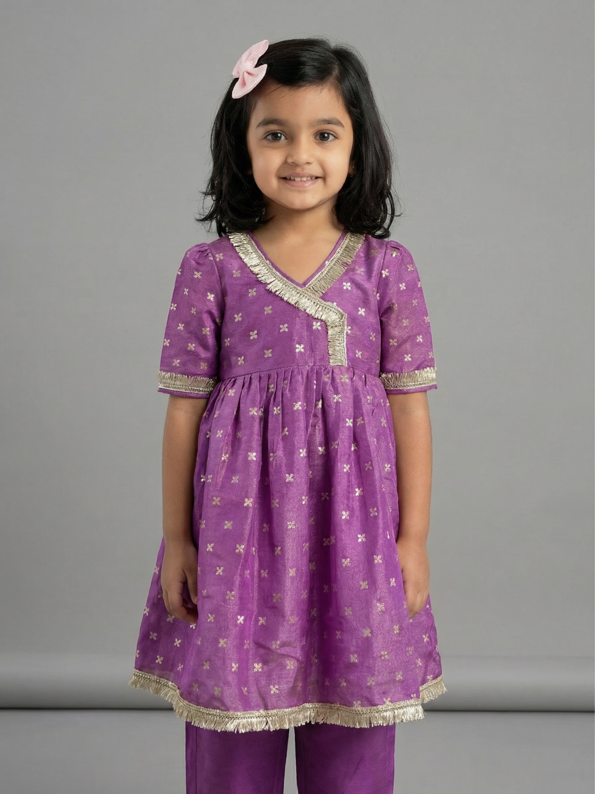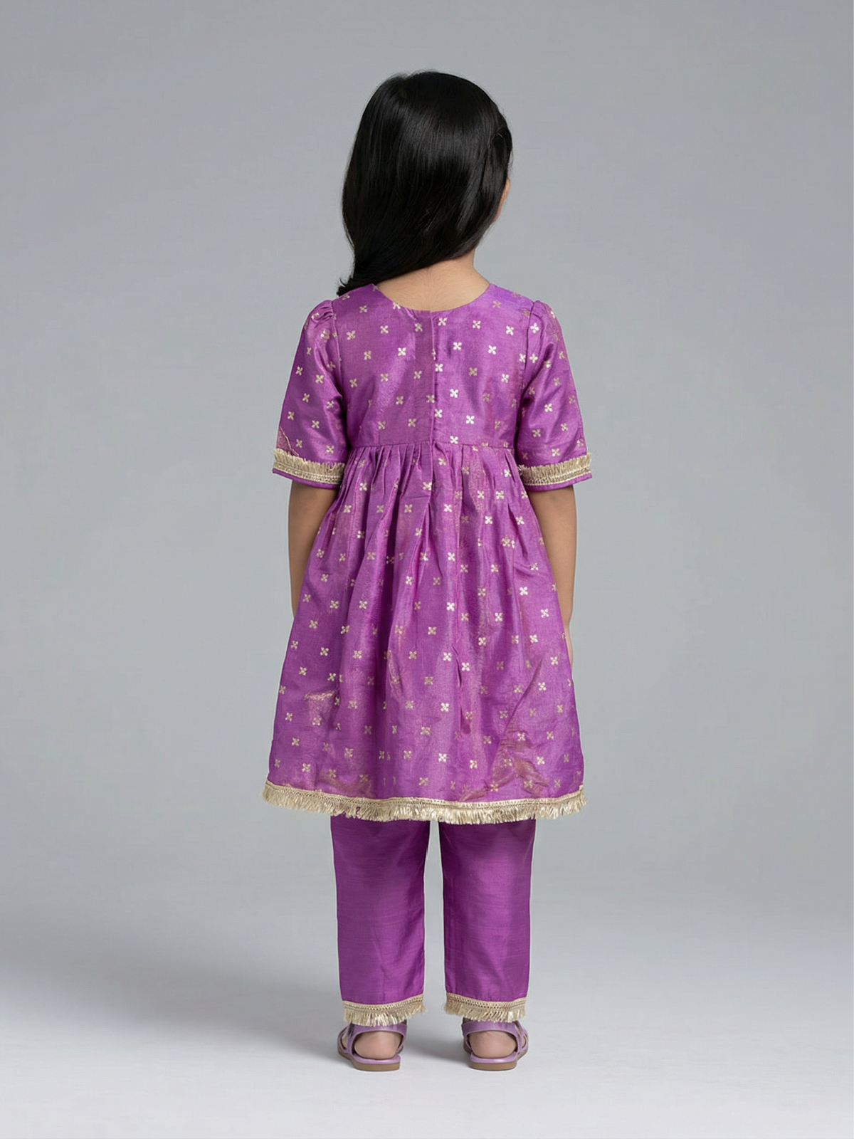 • Luxurious dola tissue silk kurta with elegant gold  lace embellishment