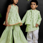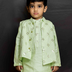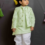 Green mirror bandhgala set for boys