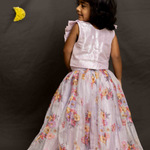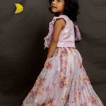 Lilac Lehenga crafted in cotton lurex and organza with double lining, featuring an elasticated waist, silver lace, and top fabric patch detailing at the hem.