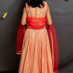 Contrast Red Net Dupatta enhanced with peach shimmer fabric accents to perfectly complete the set.