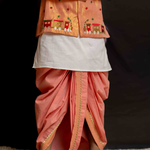 Peach Dhoti Pants in cotton fabric with an elasticated waist, finished with shimmer patchwork and gota lace for a refined touch.
