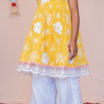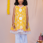 Pre-order Indian Wear: Yellow cotton embroidered kurta and palazzo set, designed for festive charm and everyday elegance.