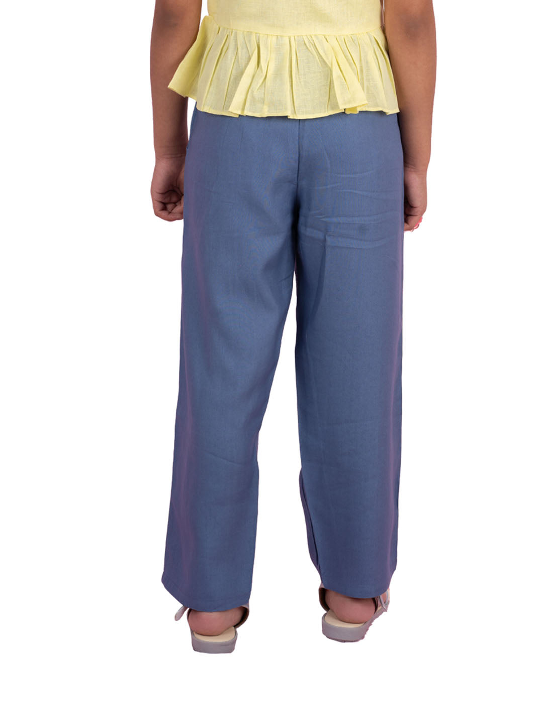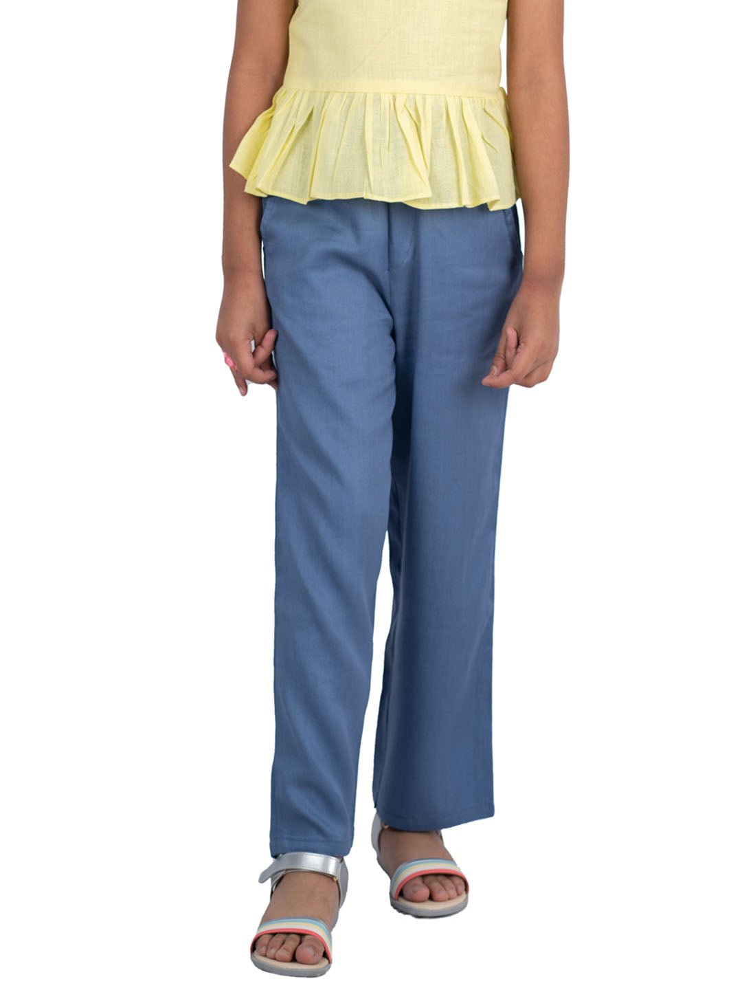 Designed for comfort and versatility, this blue cotton twill pant is a wardrobe essential for girls. The soft, breathable fabric offers ease for all-day wear, while the classic shade makes it easy to pair with any top for a stylish look.
