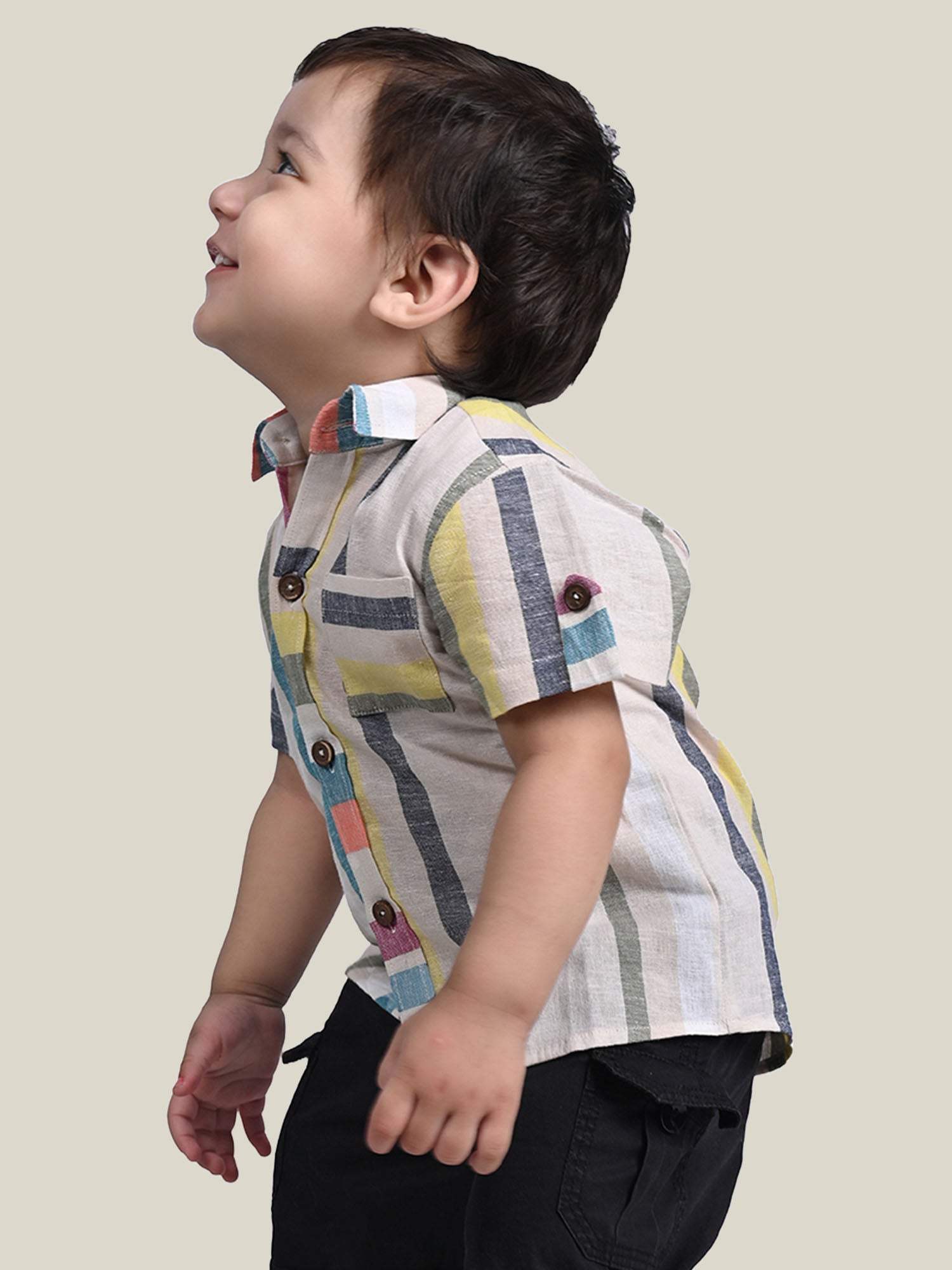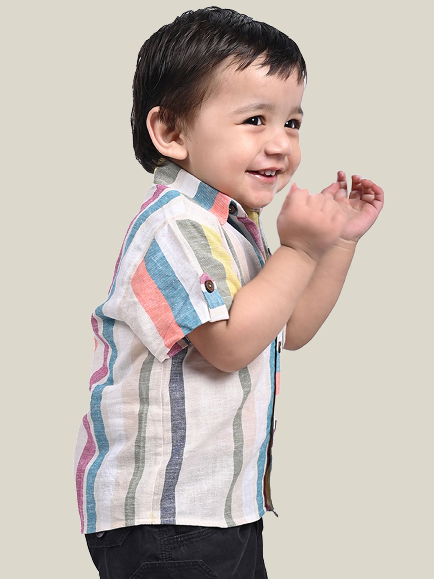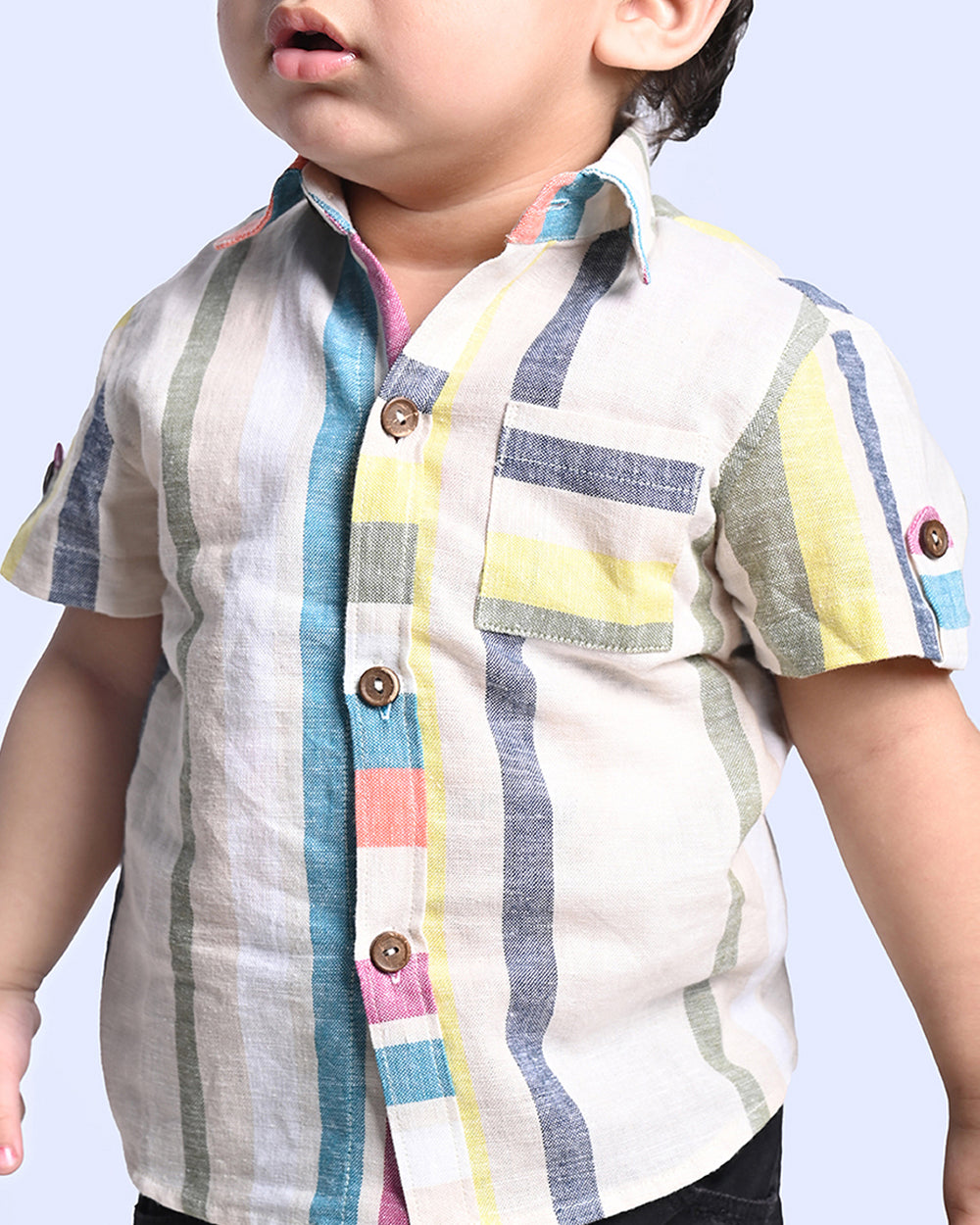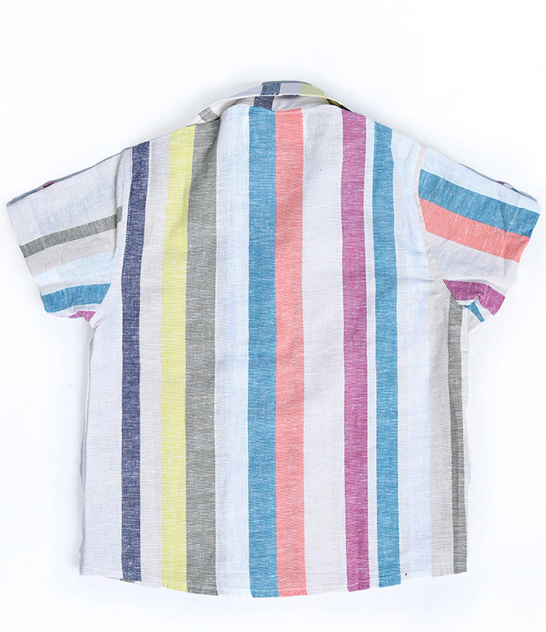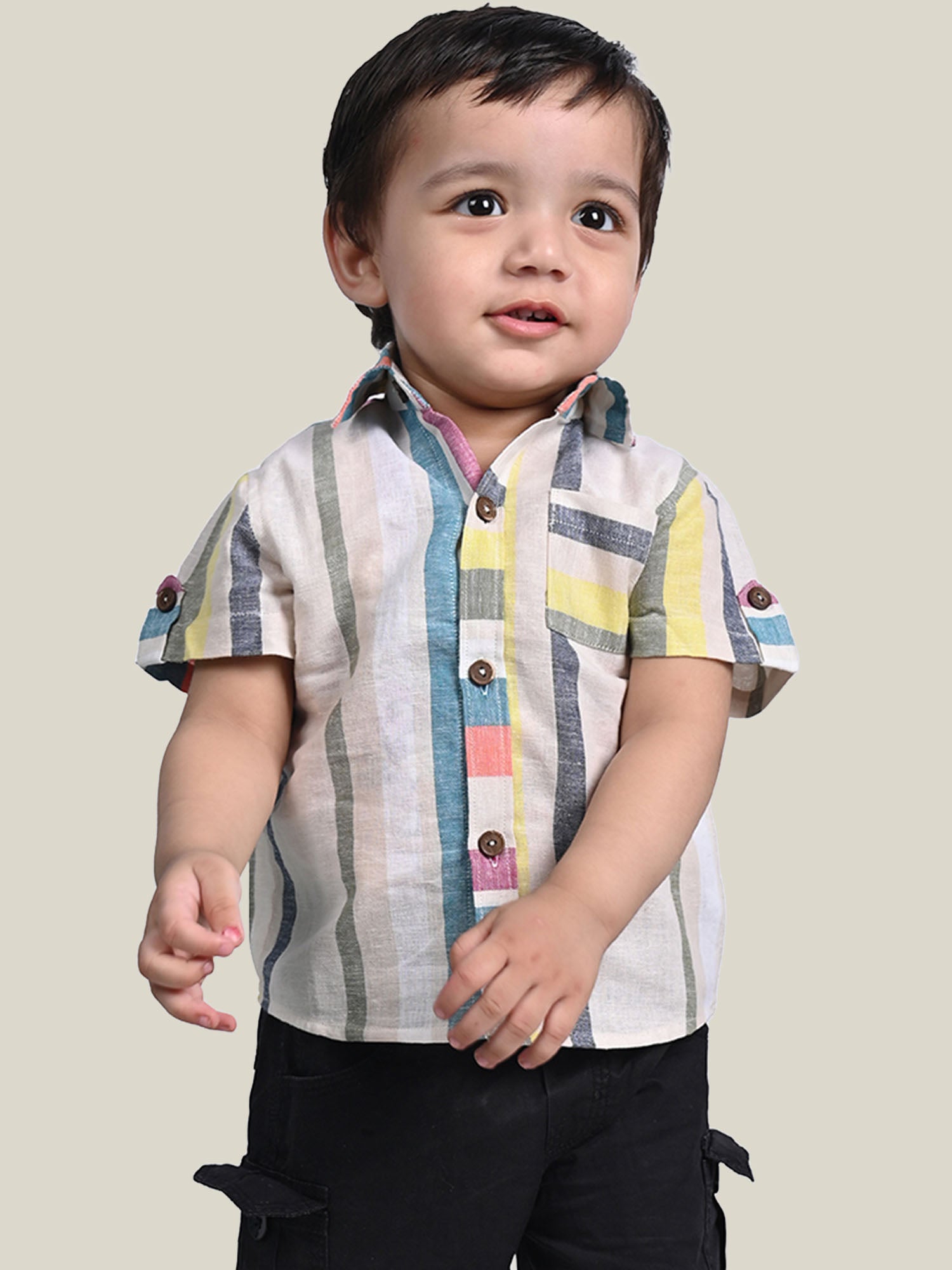 Chic Design: Elevate your kid's fashion with our Cotton Linen Striped Shirt, blending comfort and trend seamlessly