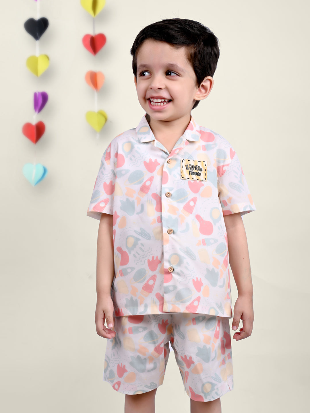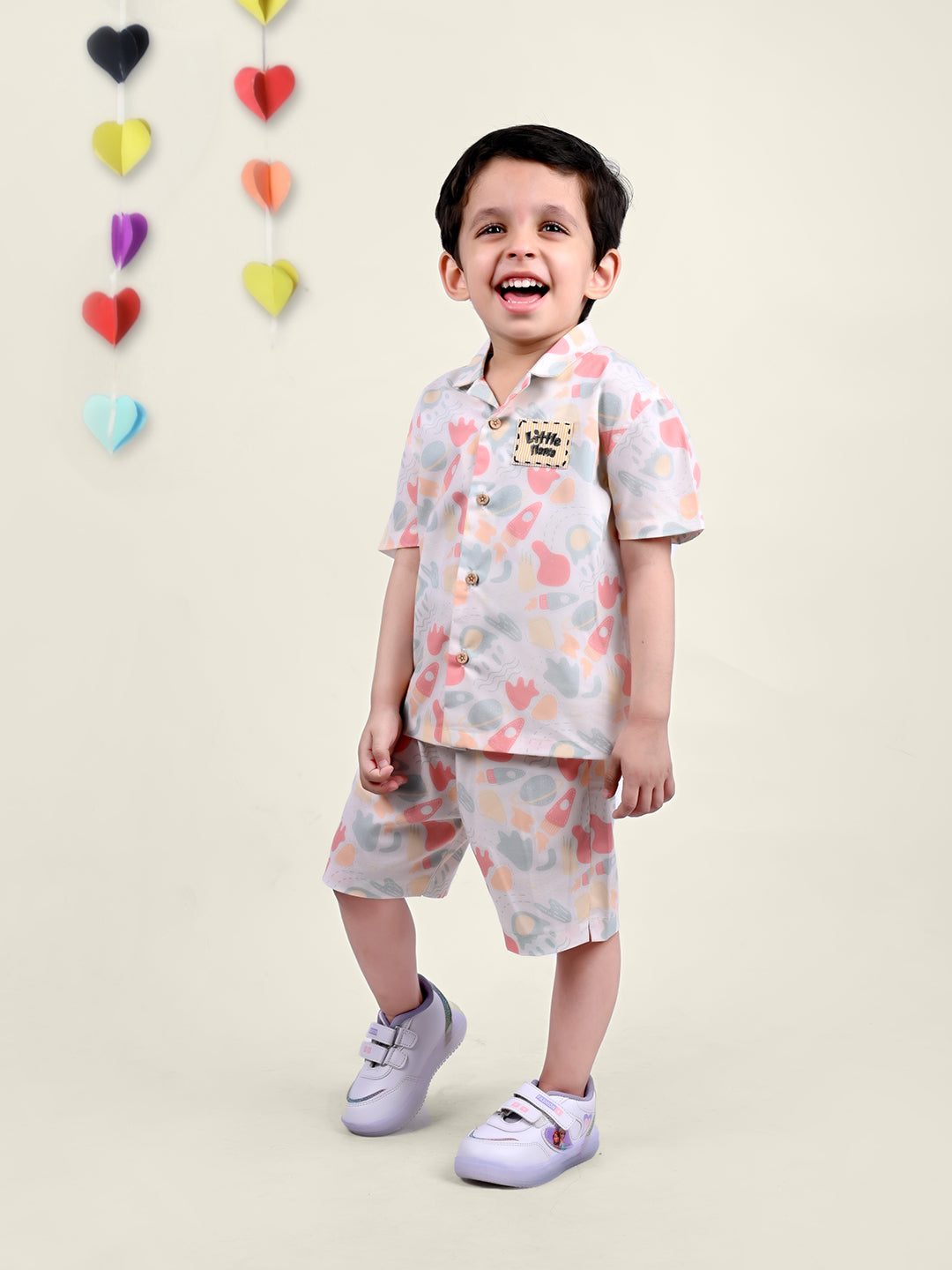 - Playful Rocket and UFO Print: The drop shoulder shirt is adorned with an abstract print of rockets, UFOs, and more, sparking imagination and creativity.
